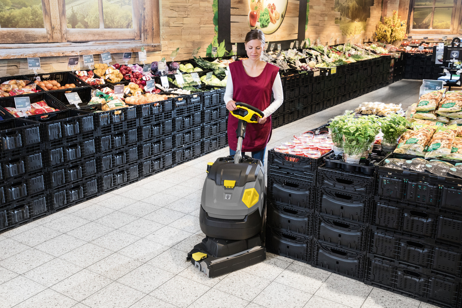 Głowica szorowarki może obracać się o 200 stopni w obu kierunkach. Akumulatory litowo-jonowe o dużej mocy zapewniają żywotność do trzech razy dłuższą niż w przypadku konwencjonalnych akumulatorów ołowiowych i są całkowicie bezobsługowe. Zastosowanie innowacyjnego trybu eco!efficiency może jeszcze bardziej wydłużyć czas pracy i zmniejszyć hałas emitowany przez urządzenie o około 40%. Opcjonalny filtr HEPA filtruje wydmuchiwane powietrze umożliwiając pracę w obszarach wrażliwych na higienę.